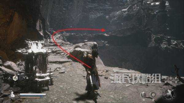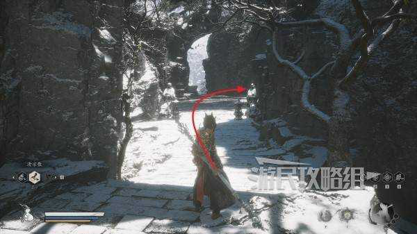 第一次战斗结束后,需要进入山洞继续沿着唯一路线往前走,走到室外落雪的石板路后,继续往前就是一片开阔区域,在这里第二次击败不白即可获得精魄。旁边还有一个蒲团。