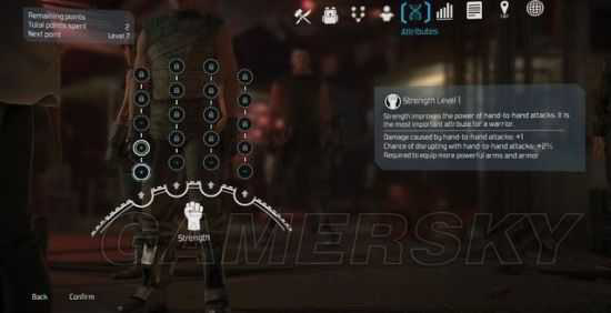 力量越高的人,造成的物理攻击和近战伤害越高,并且拥有更高中断敌人的机率。