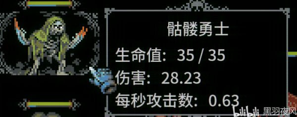 最大骷髅召唤数量:到boss战和后期才需要考虑的属性,初始能召2只,招满4只前排近战以后才会召出不能被攻击的后排单位,建议在boss之前堆到4以上,打boss时有个不死的输出可太舒服了