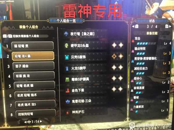 弱3攻4大部分是solo雷神用的,主打怪物弱点明显的