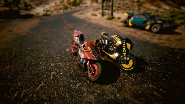 众所周知夜之城的车手感都不怎么样,很多还是后轮驱动,再加上这个飘轻的物理引擎,摩托车静止加速上一个4步台阶能飞出来5米高。