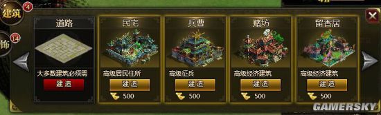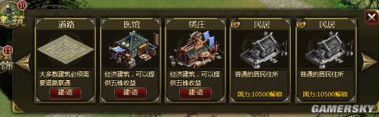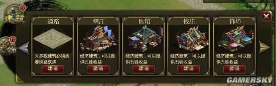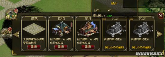 而不同建筑有不同的作用,有取得五铢和银锭产出的经济建筑,有防御或练兵用的战争建筑,有管理武将的主建筑官府等等