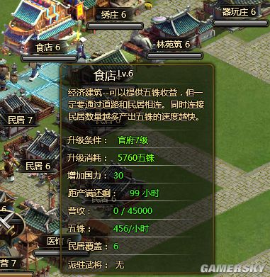 用元宝直接购买额外建筑!五铢收益大幅提高!展现你的实力!