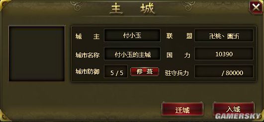 修葺主城:每座城池有五点防御力,五点防御力掉完后,城池会随机飞到其他地方。同一人攻打同一城池,掉一点防御力后,城池有十五分钟的保护时间,每掉一点防御力可用五铢修复。