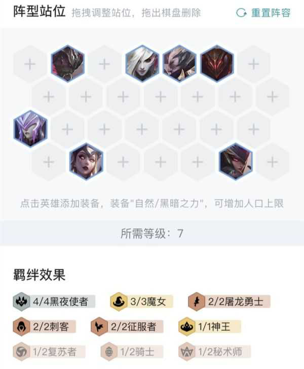 基本阵容:4黑夜,3魔女,2征服,2屠龙。