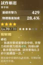 这边就小推一下斩岩,没有好4星武器的人是可以放心使用的。