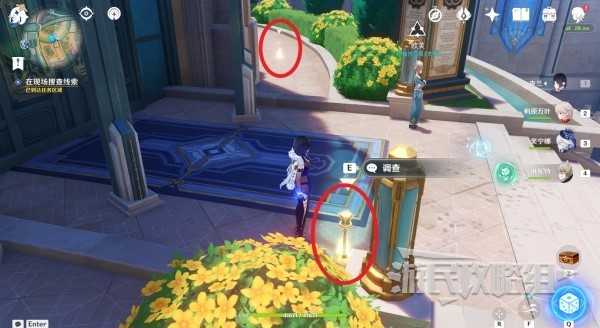 推理完毕后自动触发对话。对话完毕后,传送到欧庇克莱歌剧院东边传送锚点,前往目标位置,靠近后自动触发对话。注意前方会自动触发与盗宝团的战斗,记得提前调整好战斗阵容。