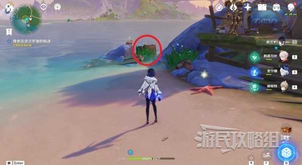 到达终点后往下放看,可以看到一只螃蟹,拾取螃蟹的能力,打碎船骸后方的石头。