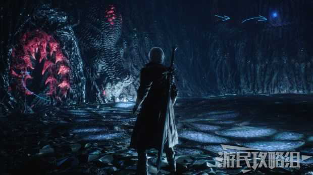 召唤Nightmare打破墙壁可以获得紫魔魂石碎片,如下图中紫色箭头所示(右边的蓝色箭头是蓝魔魂石碎片的路线)。