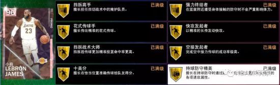 这张粉詹的防守端属性算不上特别突出,不过也还算不错,大部分属性给到了85以上,同时在SF的位置上85的力量偶尔能占点便宜。总的来说这张卡非常均衡,但没什么卓越的地方,可能很多玩家朋友对这张卡的属性不会很满意,但毕竟这是一张完全免费的卡,宽容一些吧。