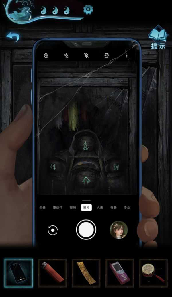 果然猜的一样嘿嘿,不过就是推进的比我想的快,汤婆婆提示用手机,延续了前作的设定,打开手机,一波小高能!还好我手稳,还是被吓到。来到后一个场景,进入六宝阁,得到打火机,看民俗风水小说得知以下信息。