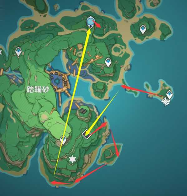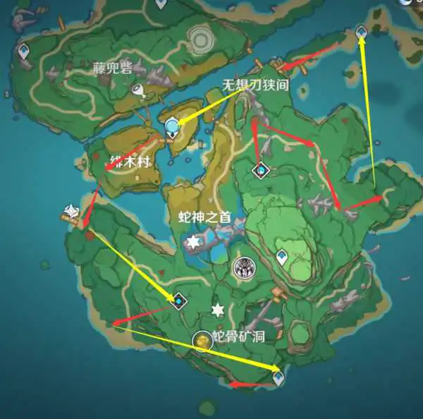 红色是路线,黄色是传送顺序。