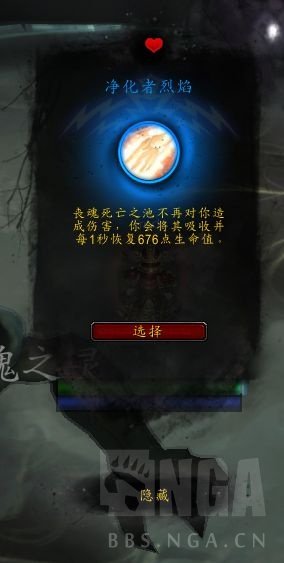 心能描述 :丧魂死亡之池不再对你造成伤害,你会将其吸收并每1秒恢复X点生命值