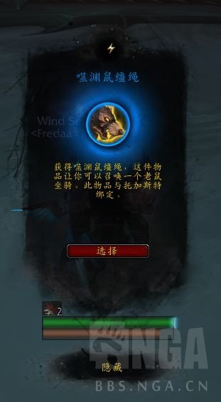 心能描述 :获得噬渊鼠缰绳,这件物品可以让你召唤一个老鼠坐骑。此物品与托加斯特绑定