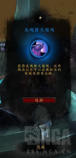 心能描述 :获得丧魂猎犬缰绳,这件物品让你可以在典狱长的军械库骑乘坐骑