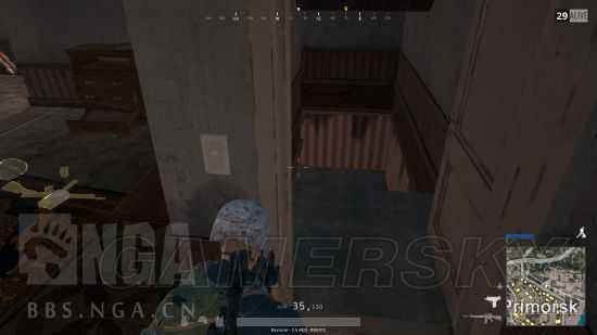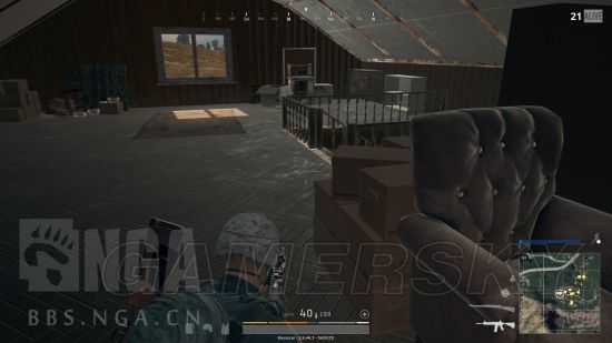 在第二层的另一个架枪点如下图所示,也正好在第一张图的绿色区域。除此之外还有二层上三层走廊的架枪点,这两个位置都可以通过三楼进行反雷。