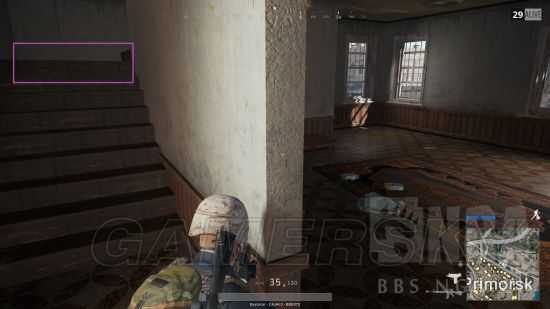首先是第一个二楼架枪点。因为一二楼中间的拐角会露出下半身,所以上楼的架枪点基本上都在二楼。这个位置正好也是我第一张图的红框。清楚位置后,就可以对那里进行手雷或闪光问候了,记得要温雷哦。