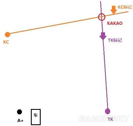 只要KC和TK进行了标点,通过两线交点的方式就可以明确KAKAO确切位置。