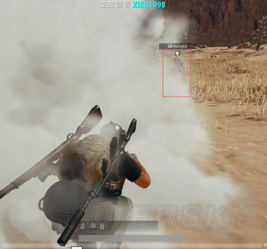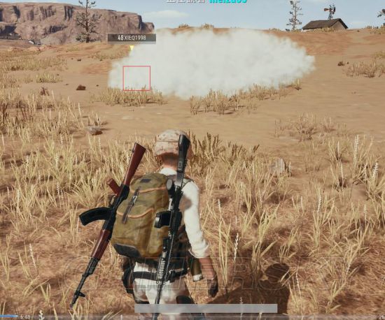 在讲解用法前我先指出因为绝地求生独特的第三人称fps机制对烟雾弹的影响。不同于传统的fps类游戏如CSGO中的烟雾,会阻碍自己全部的视野即在烟雾中无法看见任何事物,在绝地求生中身处烟雾边角或烟雾后可以拥有烟雾外部分视野,而烟雾外的人是无法看到烟雾中的人的。效果如下