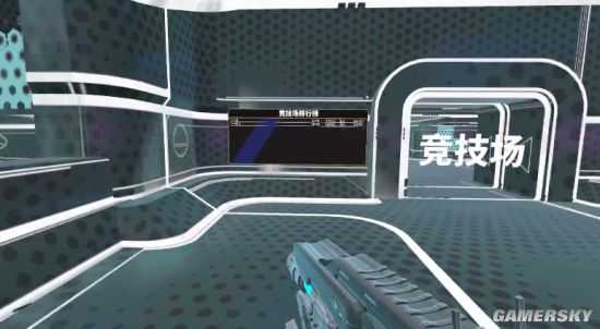 靶场右边为竞技场。触碰中心的屏幕后,你需要在五分钟之内尽可能的活下来,干掉出现的虚拟敌人。无论是否完成挑战,你的名字都会记录在竞技场的排行榜中。