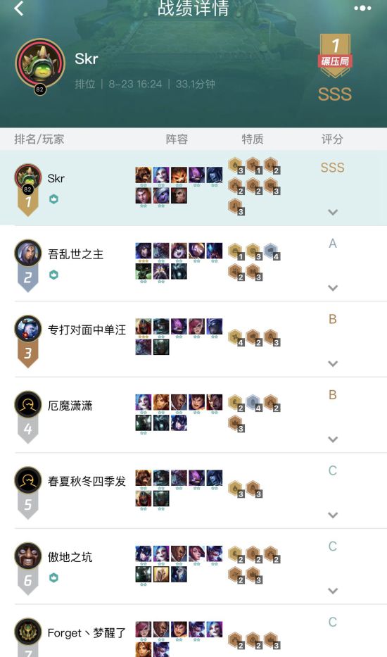 这是我吃鸡的时候别人第二第三的阵容。有6贵,有斗法,有德莱文,甚至有个完美9人口虚空斗法2暗影。
