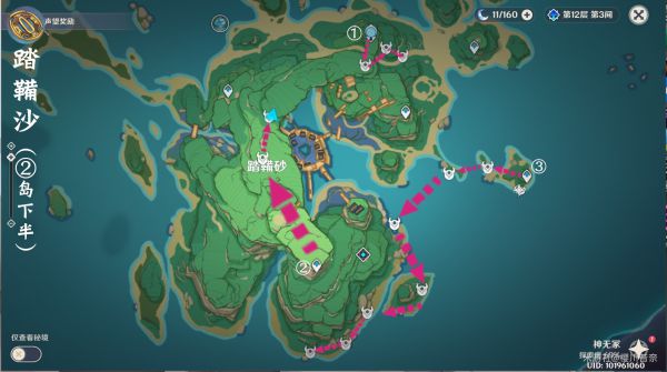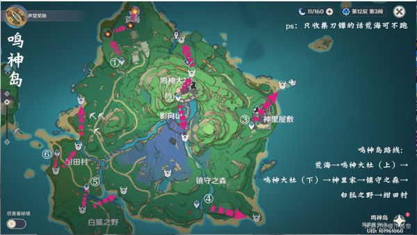 第二站就是鸣神岛啦 因为也缺混沌材料的关系我是跑荒海线的 如果只需要刀镡的小伙伴可以直接去鸣神大社开耕顺序看图来就可以!