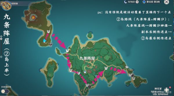 跑完了最右边的鸣神岛 就到②岛上方九条阵屋了! 可能是因为活动的关系 尾端的点似乎没有怪(应该被覆盖了)