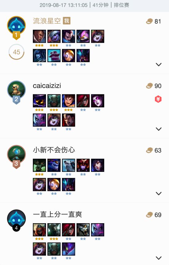 很喜欢萌萌的约德尔人和酷酷的卢锡安,老想着让他们上场,刚刚用他们赢了一把,阵容如下。