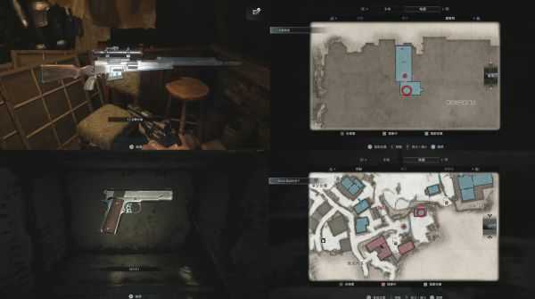 F2狙击步枪位于城堡中,我们经过阁楼前往天台获取愤怒面具的途中就能看到,这里属于必经之路,一般不会漏掉;我们完成城堡任务后回到村庄,在前往红烟囱房子的路上,解开密码锁取得千斤顶把手的同时可以获得M1911手枪,其同样是在主线必经之路上。