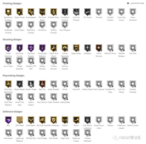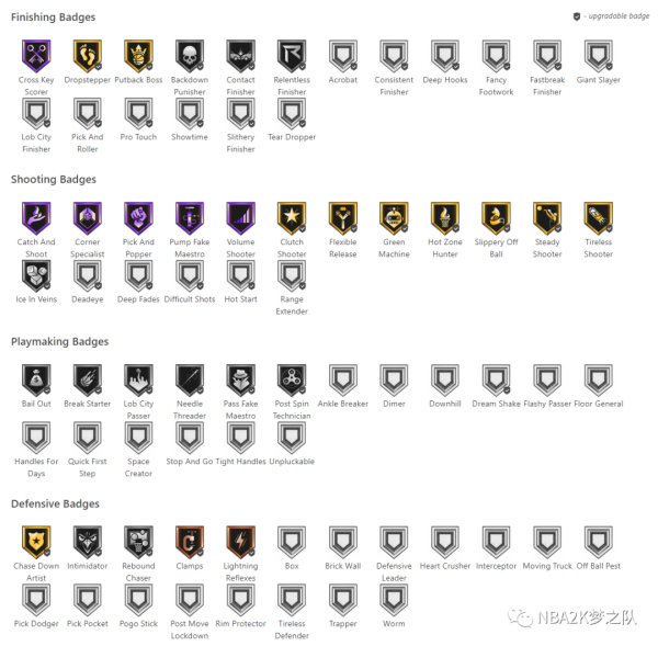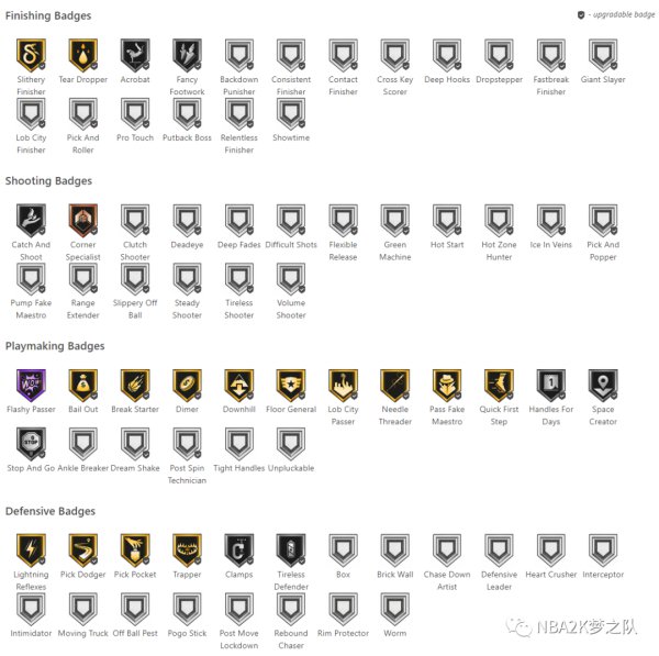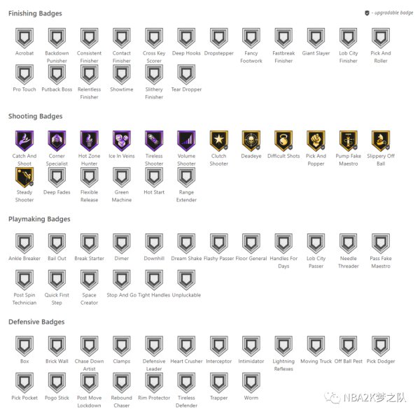 徽章方面,5枚紫章中4枚都是投篮型的,热区猎手可以很好的配合底角热区,挡拆投篮手也让他成为了挡拆外弹的不二人选、