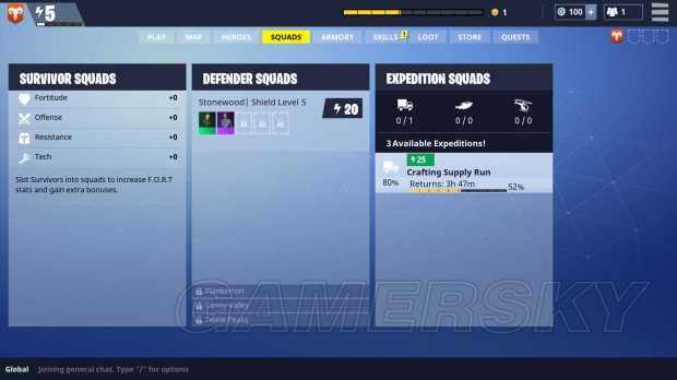 Expedition Squads(探险队伍):至多3人的队伍,解锁之后可派出队伍探索,一段时间之后,如成功的话会带着装有道具及材料的箱子回来。