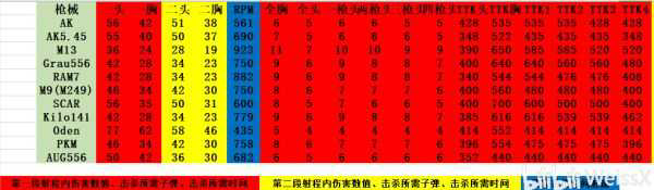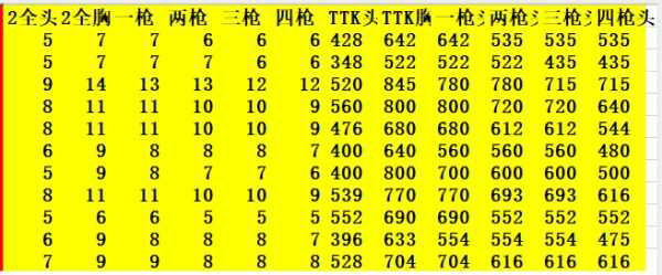 不过这枪远了会很飘很奇怪, 所以优势并不明显,本来做这个表就是期待这个枪爆头收益很高,结果感觉并不满意,每两枪爆头才减少一发子弹,TTK也没太大优势,举枪速度也不如grua,排除。
