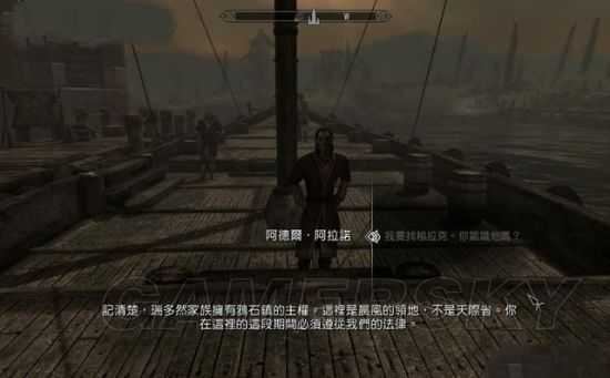 为了调查这伙袭击者,主角前往风舵城的码头,和船主加朗德交谈,说服(威吓或贿赂)他开船前往晨风省的索瑟海姆。