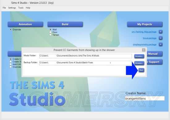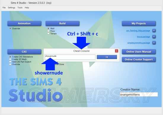 2.打开刚刚安装好的Sims 4 Studio,同时按住 Ctrl 键 + Shift 键 + c 键,这时将出现一个对话框。
