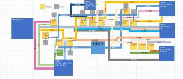 第一张图是总线思路,总线流将所有产线聚集在了一个地方,但是这个思路我自己布置起来感觉非常杂乱,也不方便对产物进行运出,就对这个思路进行了改动,拆分为了两条线,也就是后面四张图。