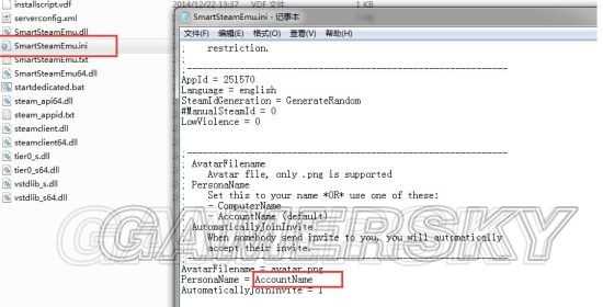 记事本方式打开游戏目录下面的SmartSteamEmu.ini(或SmartSteamEmu),找到=AccountName,修改等号后的英文保存。只支持英文和数字名称。