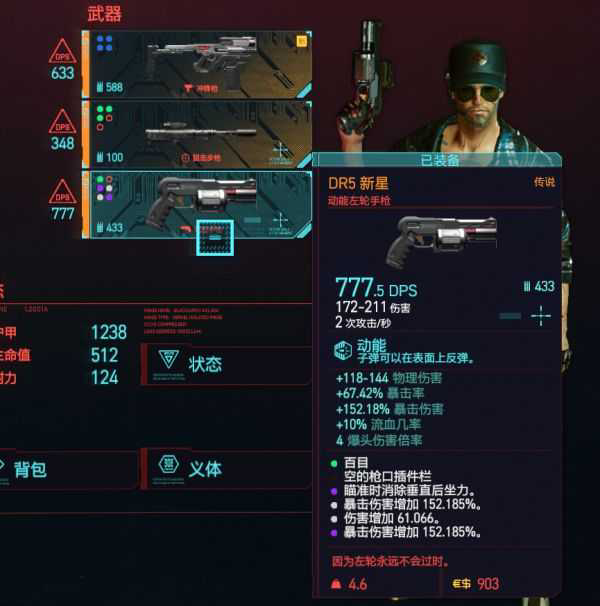 至于近战武器,我选的是武士刀-觉,他自带500%暴击伤害,虽然面板不高,但是真的切菜一样,比那些2000DPS的武器不知道高到哪去了。