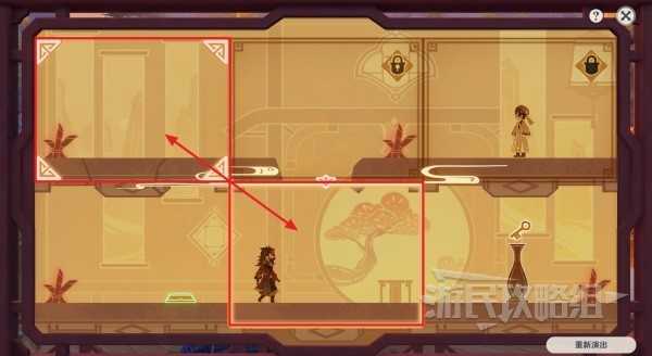 当角色踩完按钮走到花瓶所在的幕布时,将【下层左】和【下层中】交换。