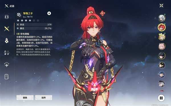 4、连招:E技能(触发一层被动) ->四下平A->E技能(官方连招),连招是可以打满能量条的,最后接重击(被动变为二层),切人(雷系角色,现版本:卡卡罗、渊武)。