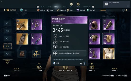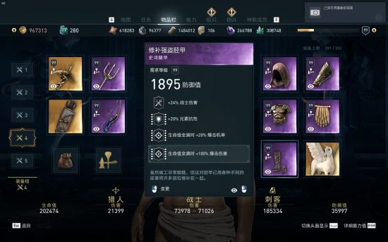 这是正常纯手打的玩家能配出来的最高四暴且最高防御数值下的肉矛战士老乌龟配装,排除希腊英雄套之后高于这个防御数值的配装或者是和这个防御数值相等但是四暴比这个配装的四暴要高的配装基本上是通过修改器修改技能点到上限。