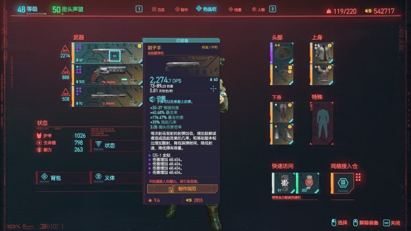 但刷了半天感觉2077的伤害数值模型和插件系统做的有点迷,下面是我现在的面板