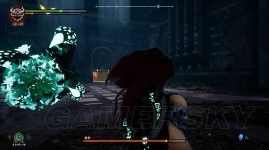 两条鞭子从上往下甩你,需要向侧边躲,然后反击。