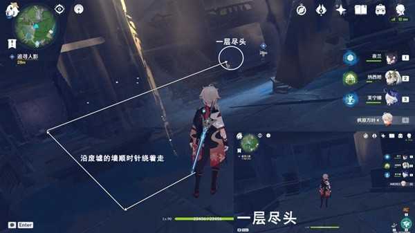 往地图的西南方向看,沿废墟的墙顺时针绕着走,前往一层尽头