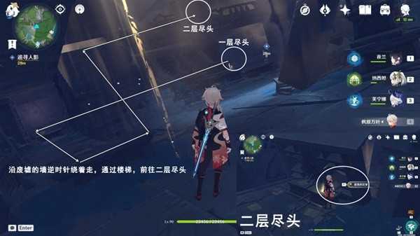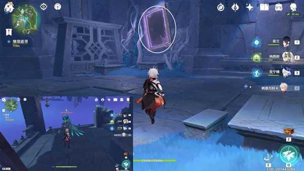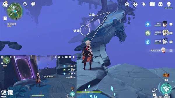 按图中指引路线走,前往下方平台上,进入谜镜
