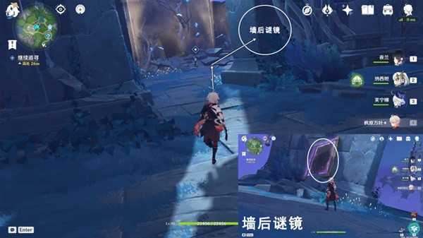 往地图的西方向走,前往墙后谜镜,进入谜镜