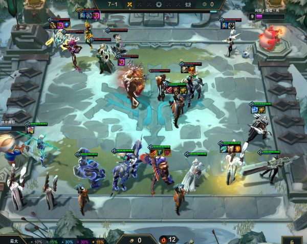 来到5阶段升级8人口后就搜卡开2铁甲羁绊,找到阿克尚和卢锡安2星,在大部分棋子2星后,就可攒钱准备拉9人口。这时候的重点就调整站位,避免卢锡安被敌方偷就好。