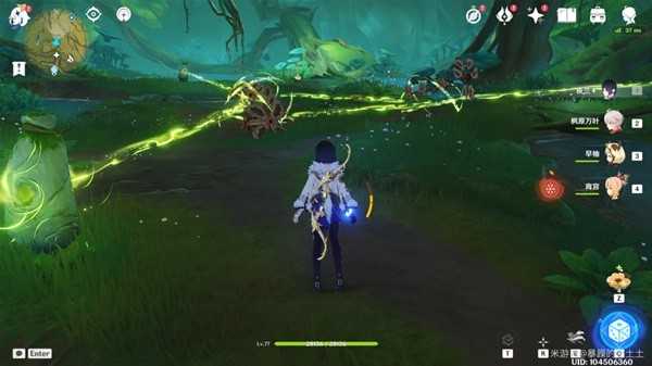 5.在附近找到「修梨薜那」,弹奏曲调进入梦中的世界,分别按以下顺序与兰那罗对话并挑战恒常机关阵列,挑战成功都会奖励一个宝箱。