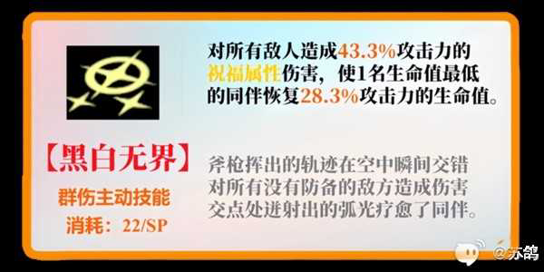 这里重点看满能量值的释放,基于自身攻击的15%为全队进行攻击力增幅。