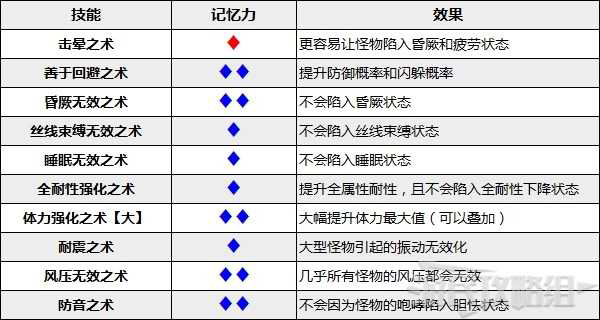 随从技能需要从已习得的技能中选择并装备上,装备需要相应插槽,越强大的技能所需的插槽越多。随从可以拘束怪物,推荐可以帮助猎人拘束怪物的技能;麻痹武器+状态异常攻击强化之术、打击武器+击晕之术的组合非常好用。