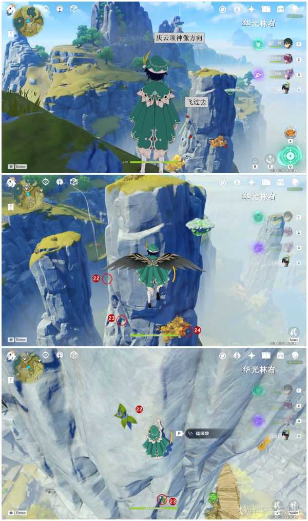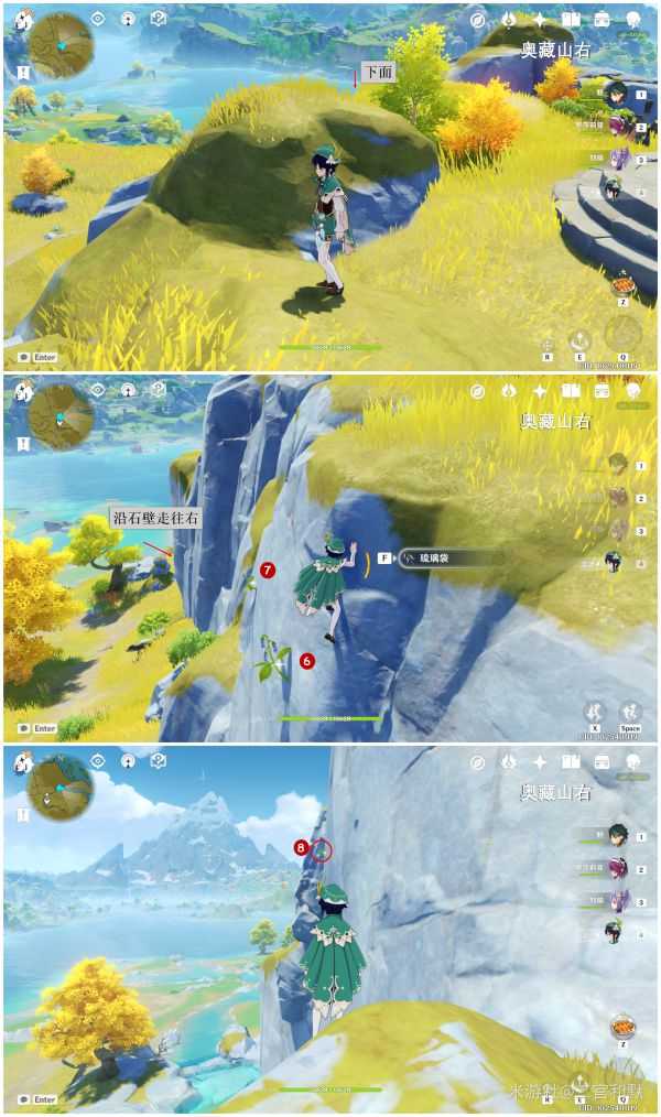 奥藏山路线附近有四个,但是那里容易迷路,位置不好描述而且还有盗宝团,就没有规划进去;还有绝云间右边有两个不仅远还要爬高高,也没有规划进去